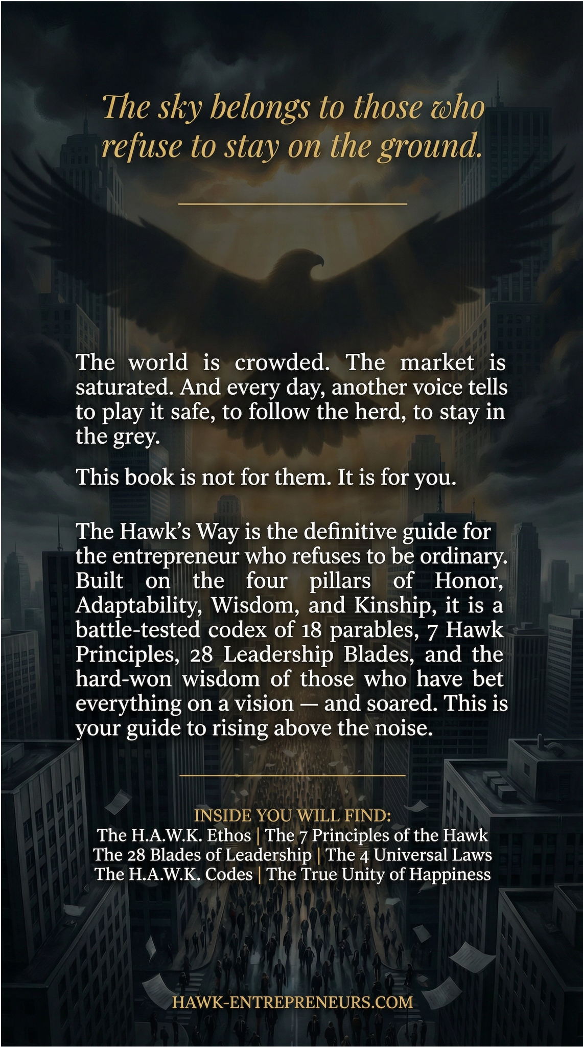 The Hawk’s Way is written like a field manual in parables—built to forge the entrepreneur and the human behind the business. It’s “a map… a guide, a mentor, a weapon,” but it won’t baby-step the leap for you.